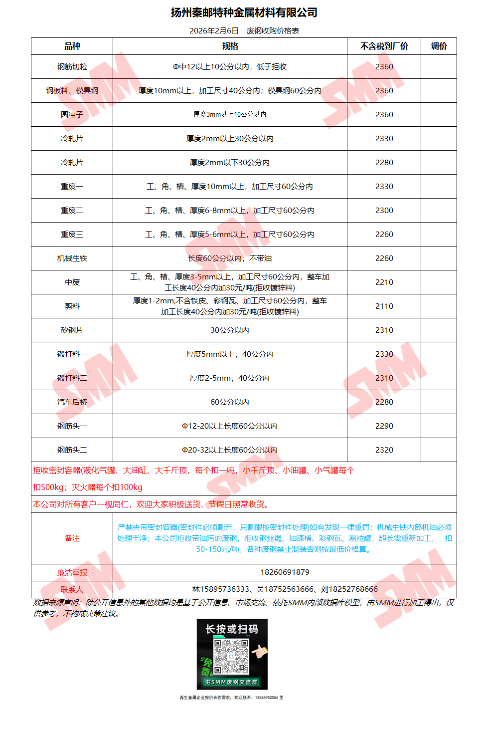 今日秦邮特钢 废钢收购报价已更新,有货的朋友欢迎联系我们!