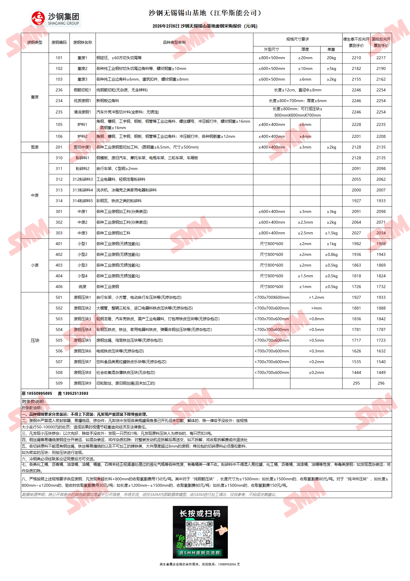 2月6日沙钢锡山基地 废钢采购报价
