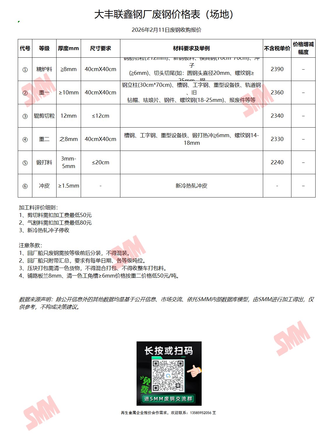 2月11日联鑫钢铁 废钢收购报价
