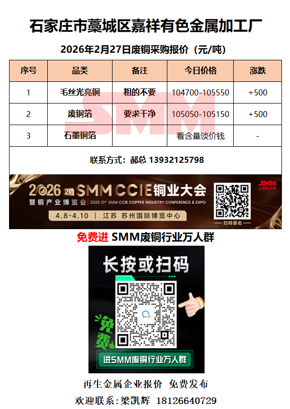 2月27日嘉祥有色金属 废铜采购报价