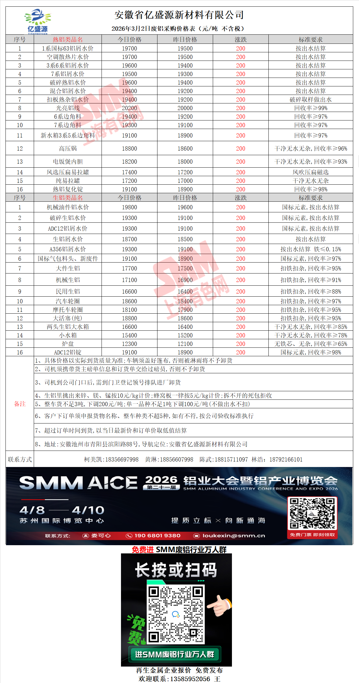 3月2日安徽亿盛源 废铝采购报价