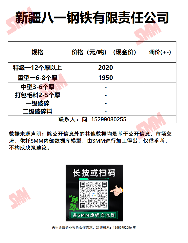 今日新疆八一钢铁 废钢收购报价已更新,有货的朋友欢迎联系我们!