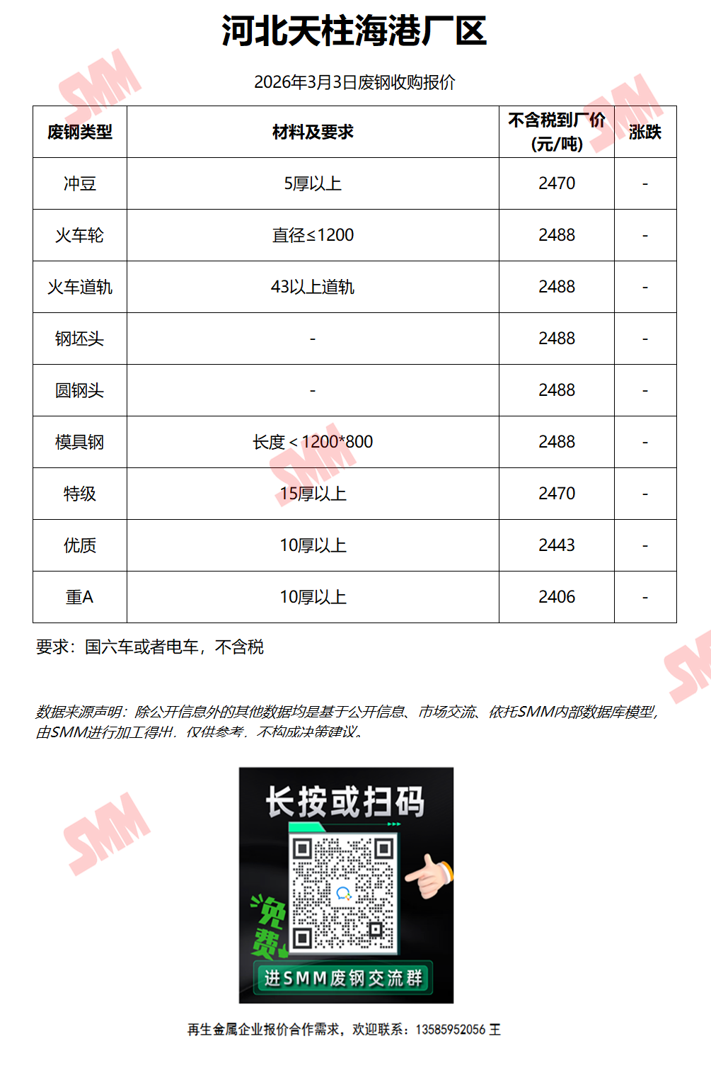 3月3日河北纵横集团丰南钢铁 废钢采购报价