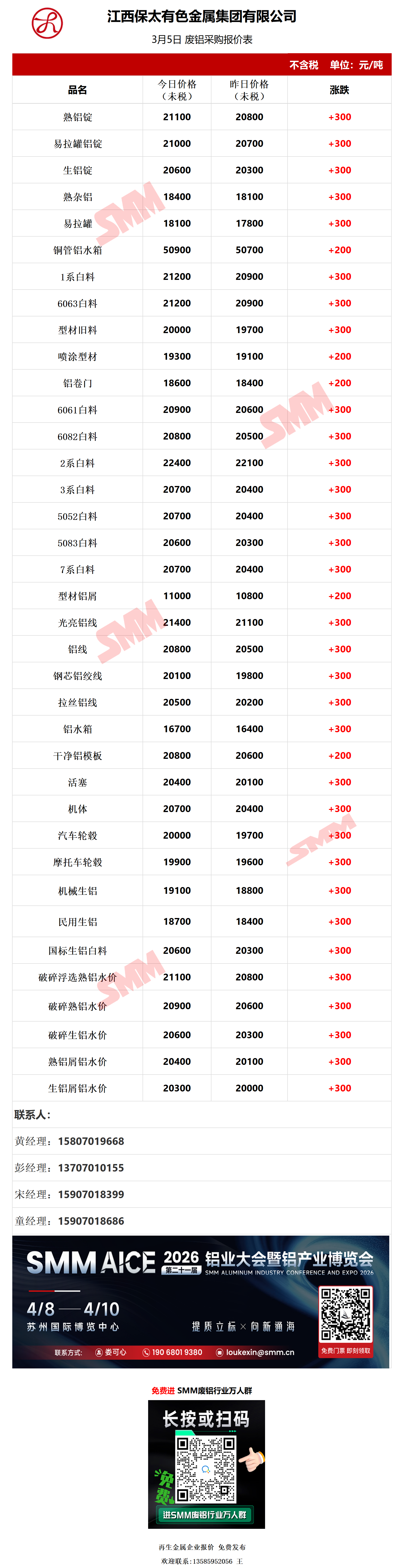 3月5日江西保太 废铝采购报价