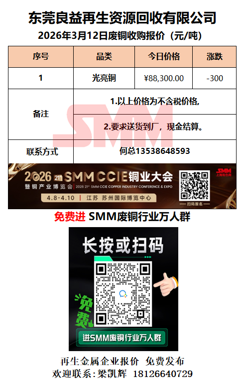 3月12日高诺(衡阳)铜业 废铜采购报价
