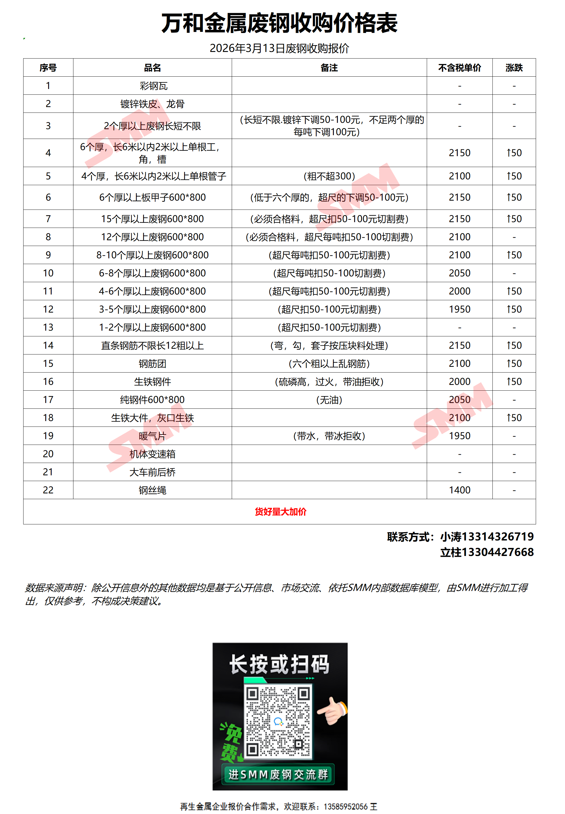 今日万和金属 废钢收购报价已更新,有货的朋友欢迎联系我们!