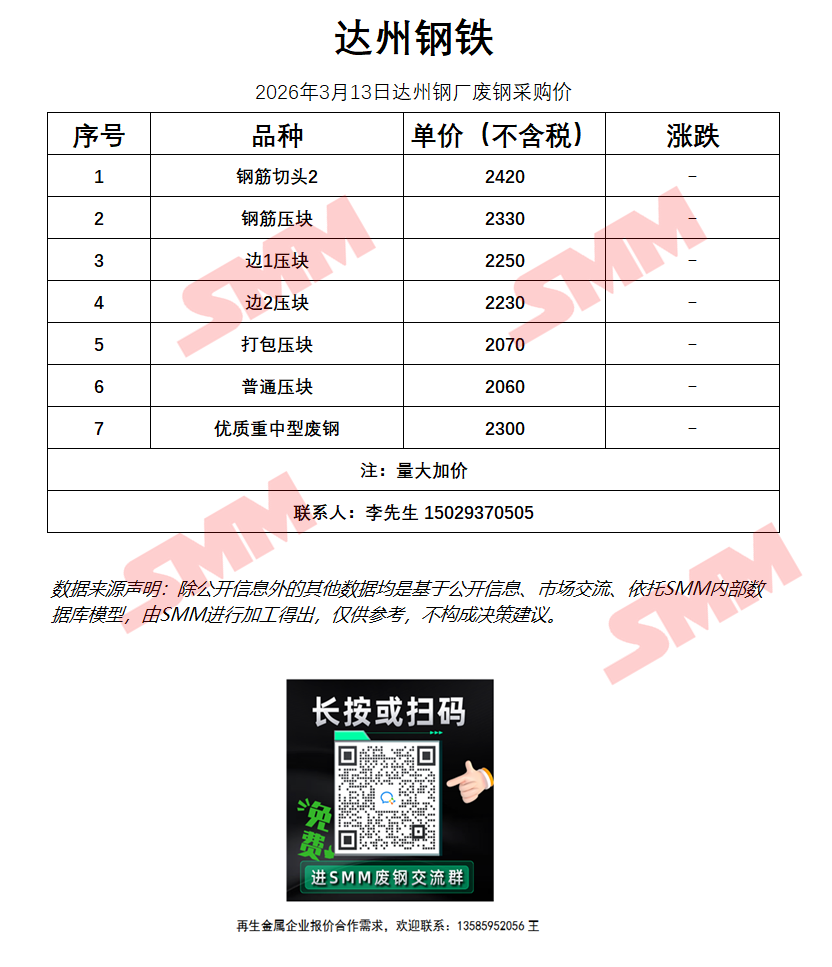 3月13日达州钢铁 废钢采购报价