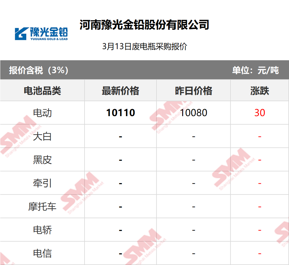 SMM 2026/3/12 国内知名再生铅企业废电瓶采购报价