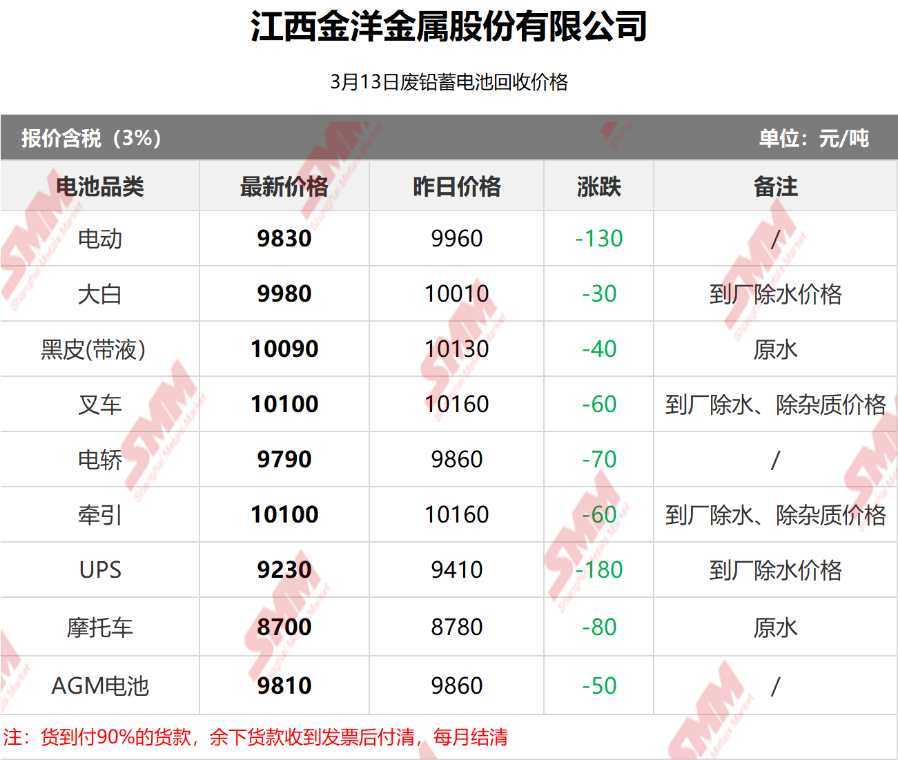 3月13日江西金洋 废电瓶采购报价