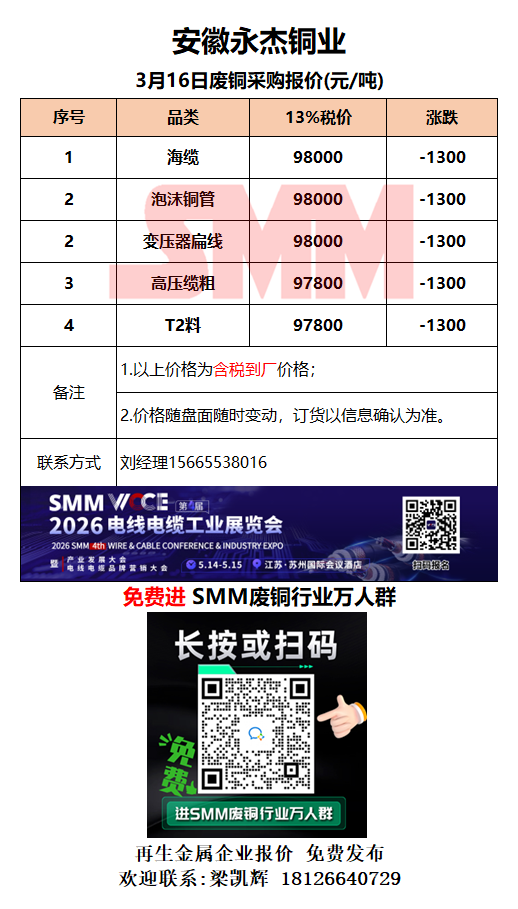 3月16日安徽永杰 废铜采购报价