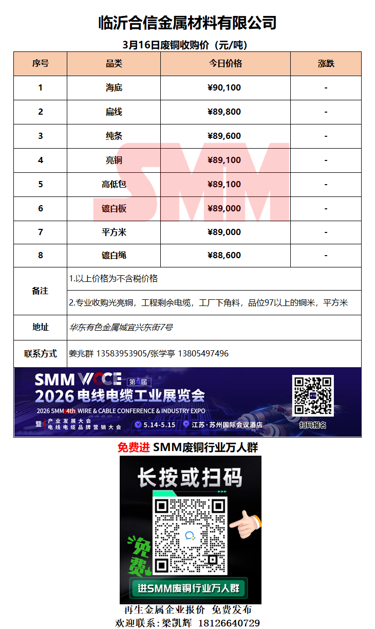 3月16日高诺(衡阳)铜业 废铜采购报价