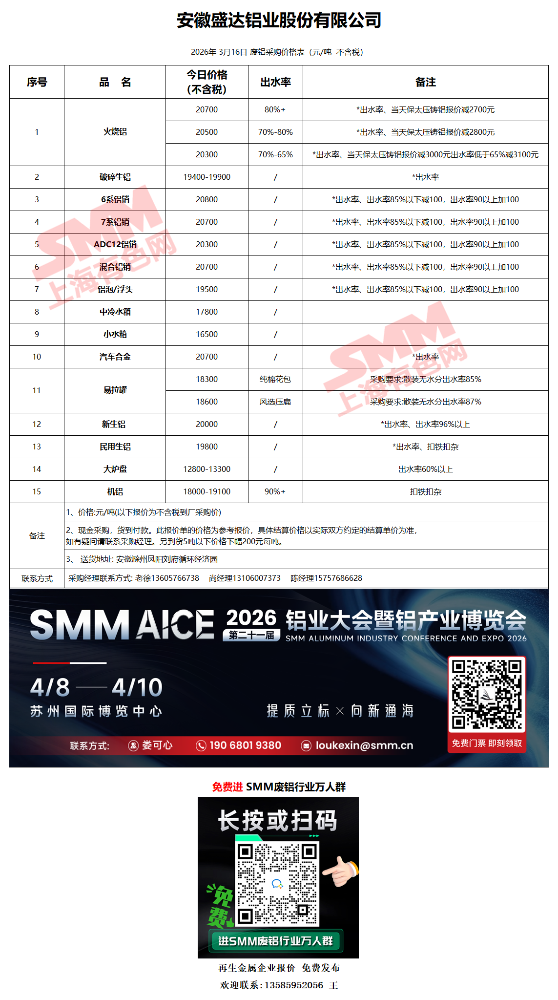 今日安徽盛达 废铝采购报价已更新,有货的朋友欢迎联系我们!