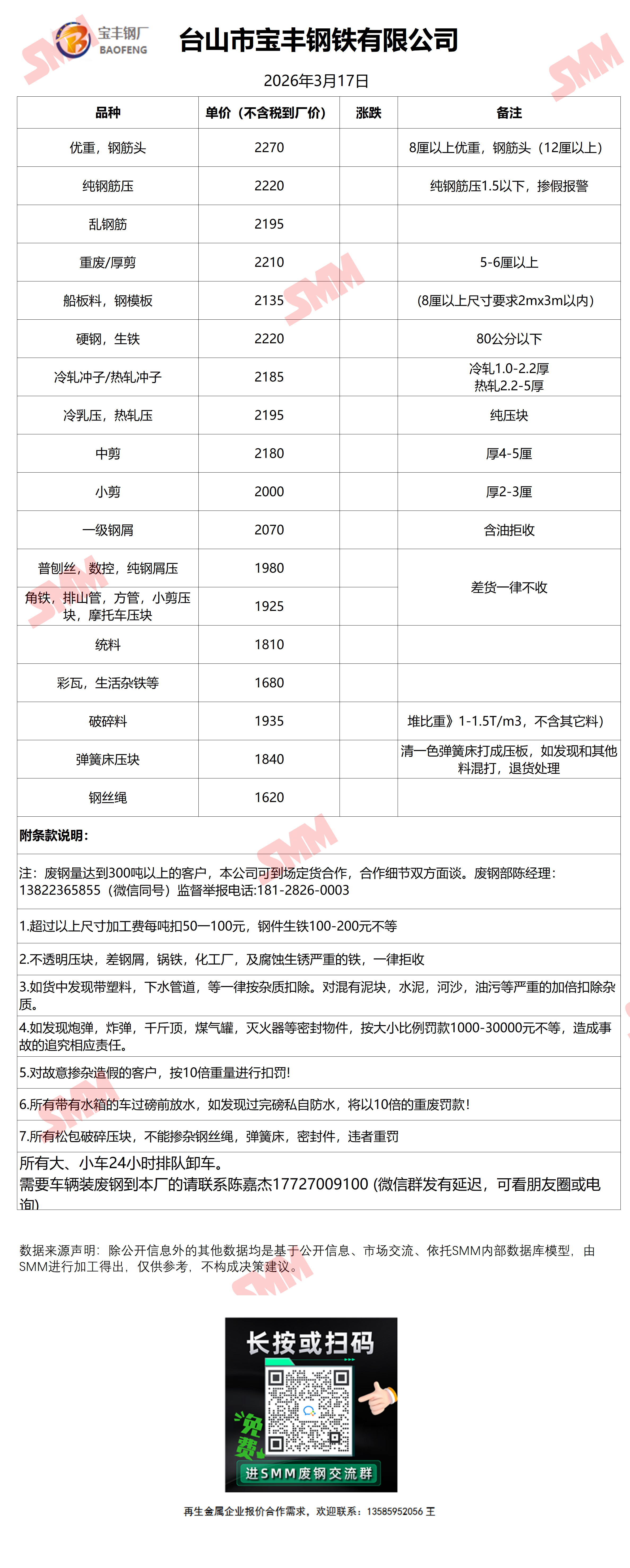 3月17日宝丰钢铁 废钢收购报价