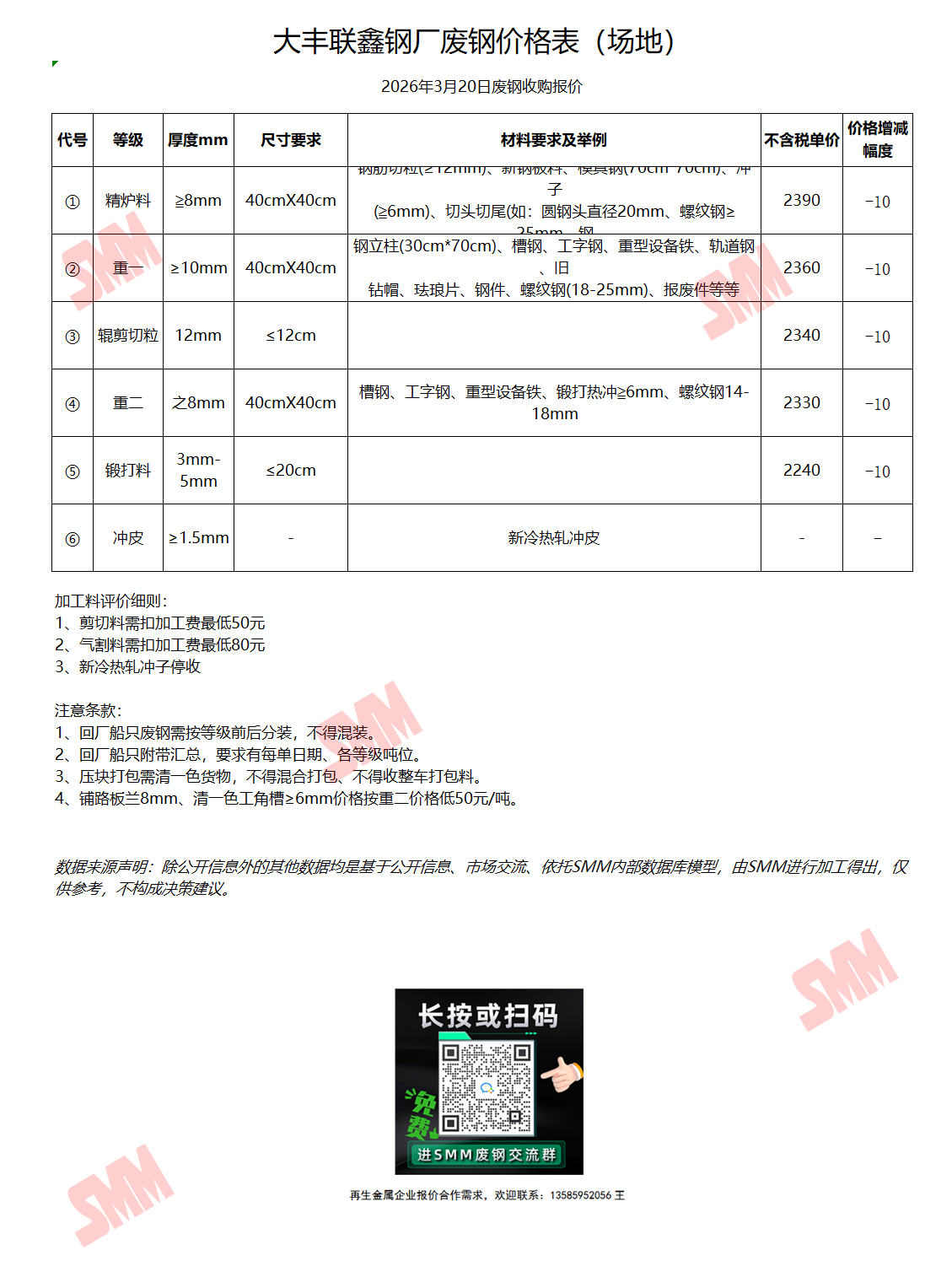 3月20日15时00分 联鑫钢铁 废钢收购报价