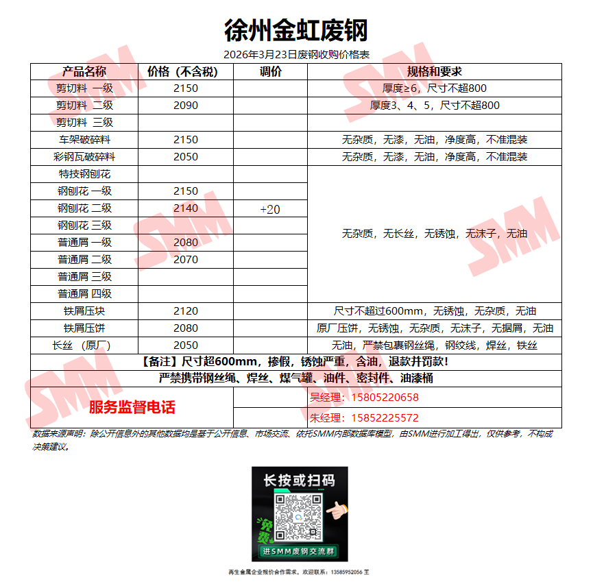 3月23日江苏鸿泰钢铁 废钢收购报价