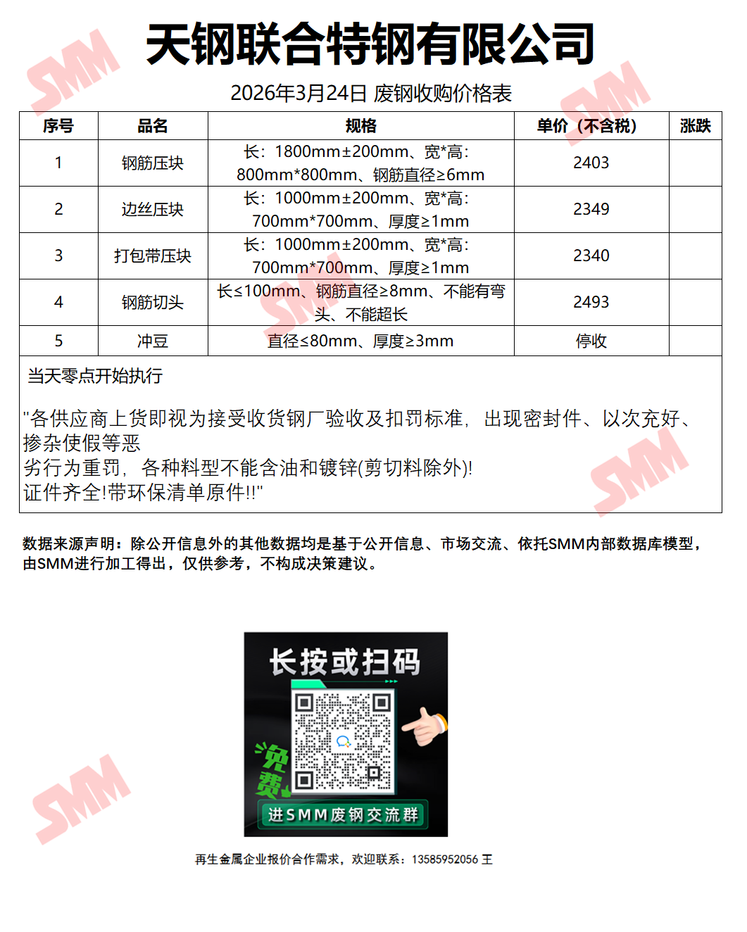 3月24日敬业钢铁(孟耳庄园区) 废钢采购报价