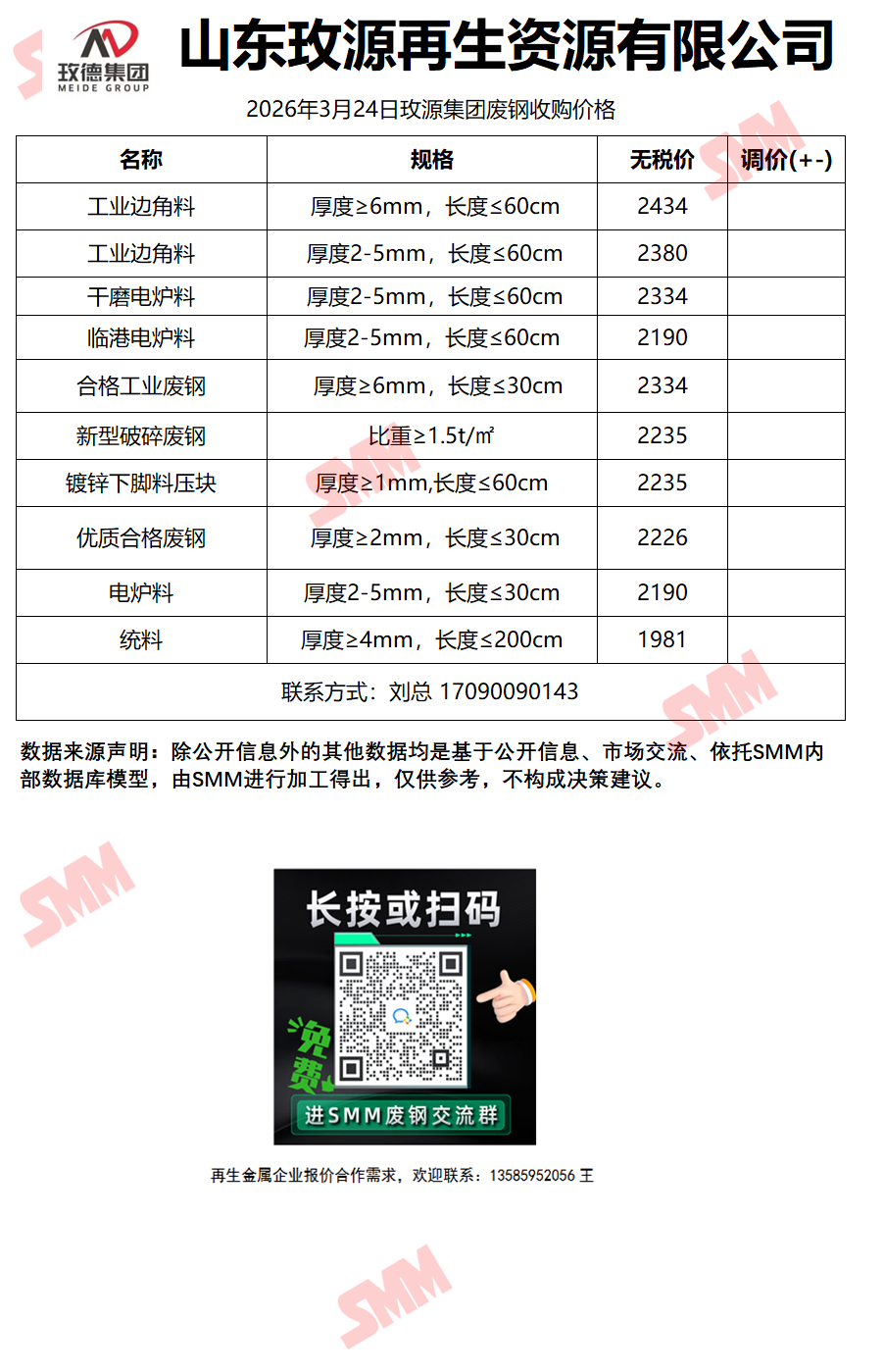 3月24日山东玫源再生 废钢收购报价