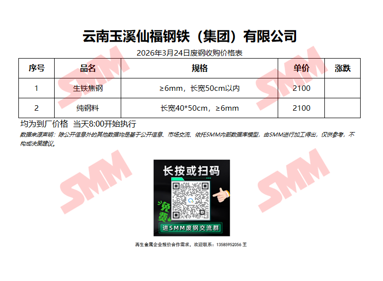 3月24日仙福钢铁 废钢收购报价