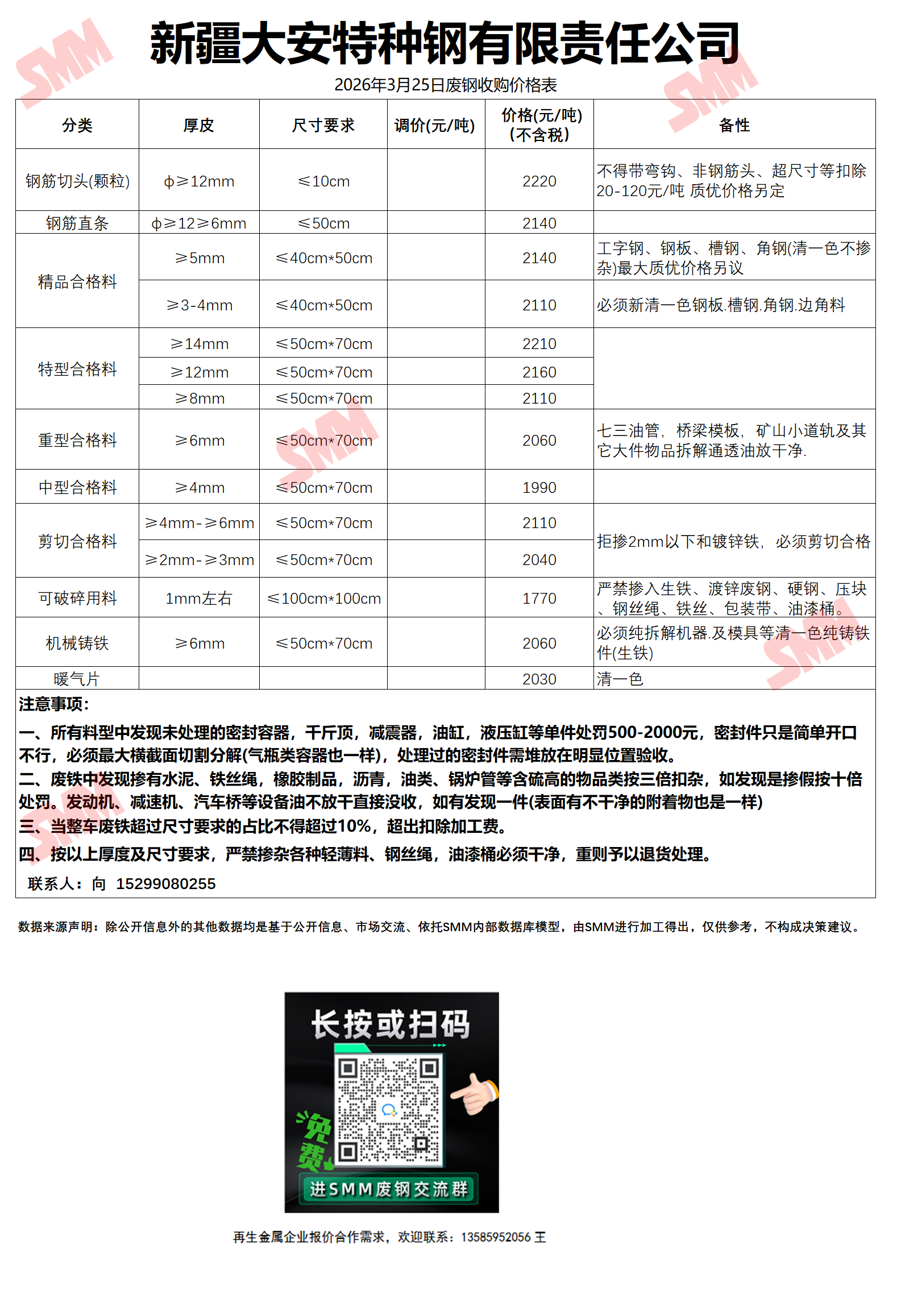 3月25日新疆大安钢铁 废钢收购报价