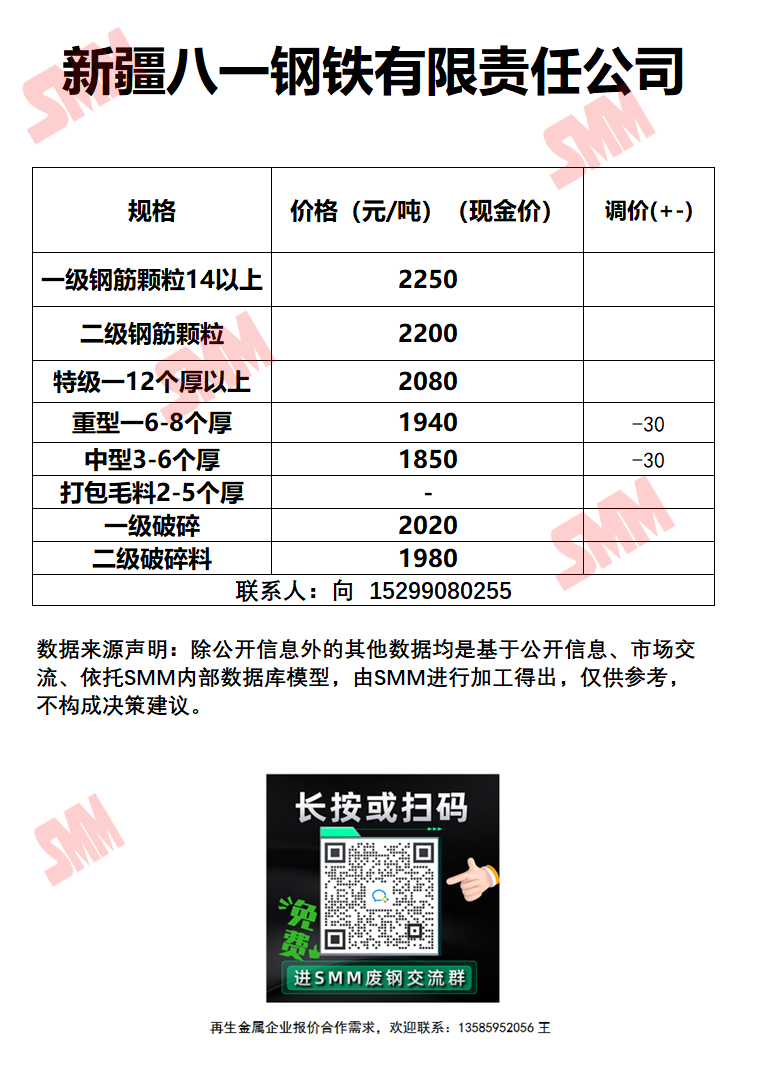 今日新疆八一钢铁 废钢收购报价已更新,有货的朋友欢迎联系我们!
