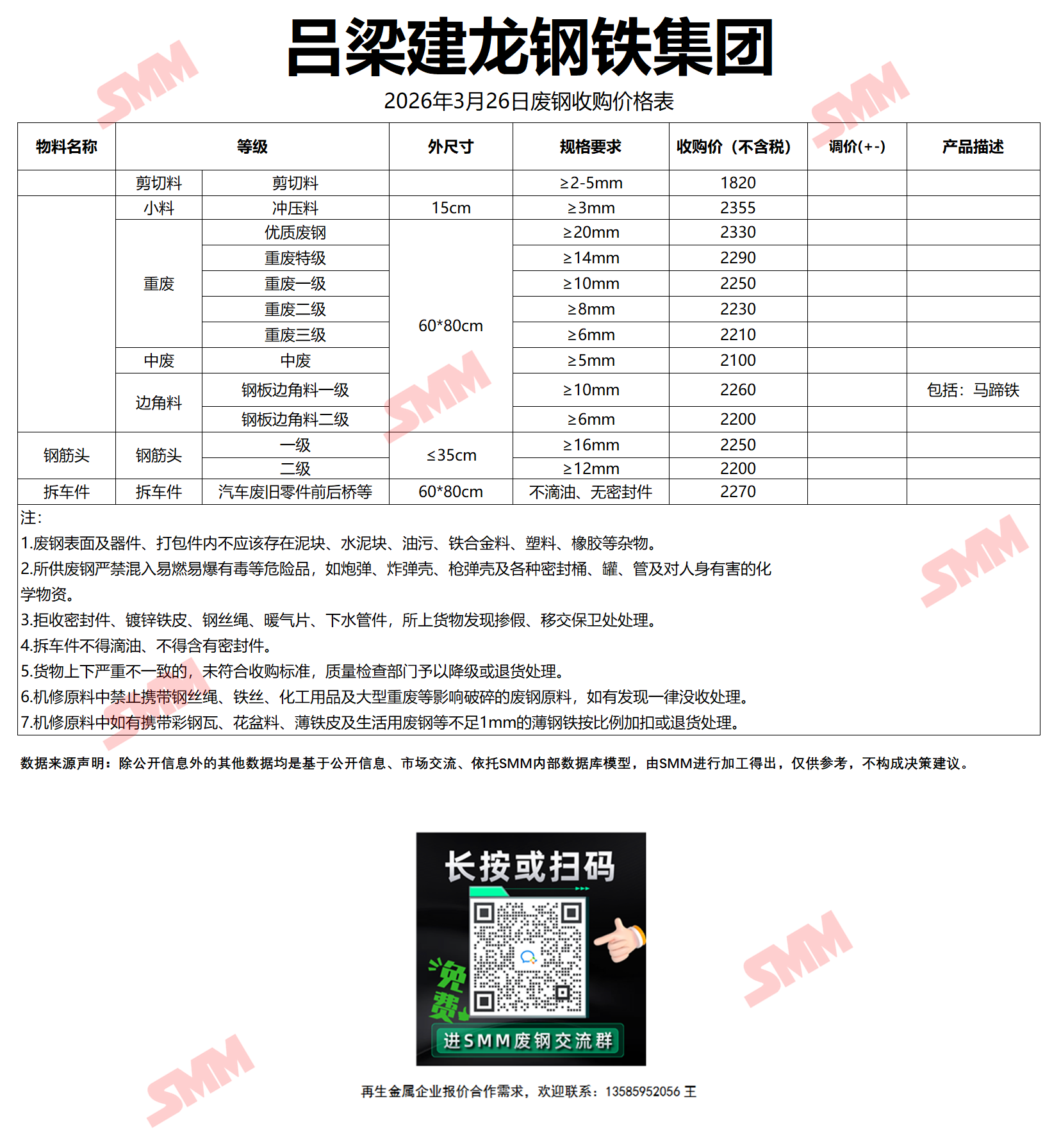 今日吕梁建龙钢铁 废钢收购报价已更新,有货的朋友欢迎联系我们!