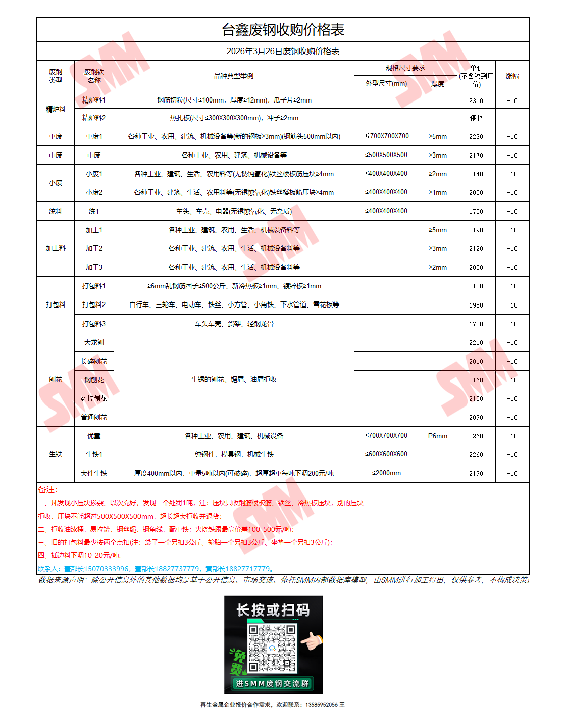 3月26日台鑫 废钢收购报价