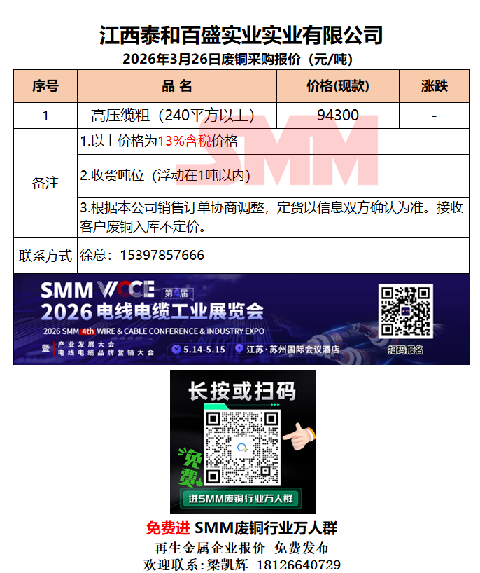 3月26日高诺(衡阳)铜业 废铜采购报价