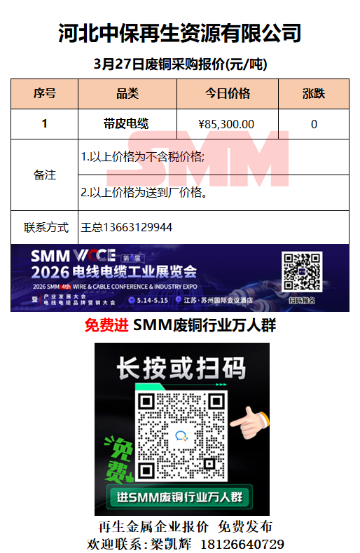 3月27日河北中保 废铜采购报价