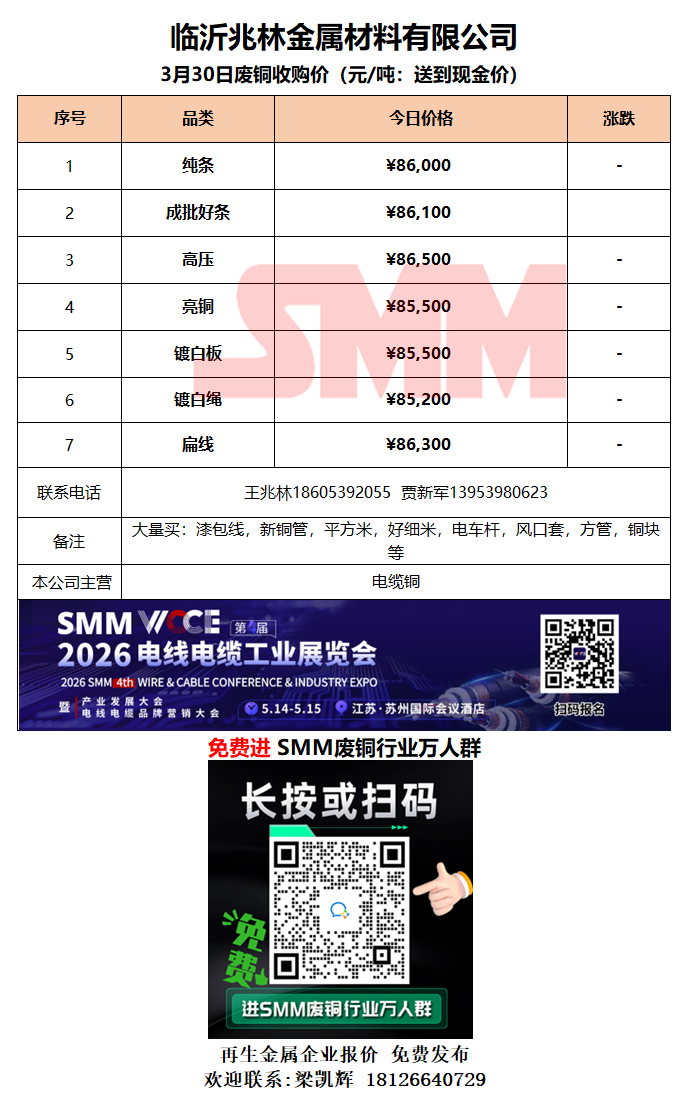 3月30日高诺(衡阳)铜业 废铜采购报价