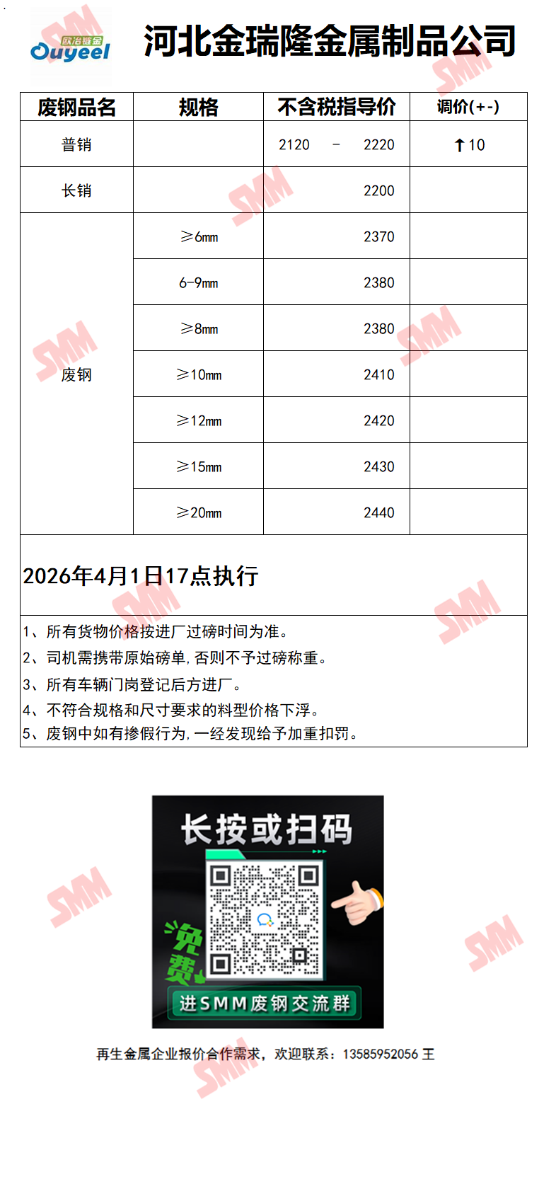 4月2日河北金瑞隆钢铁 废钢收购报价