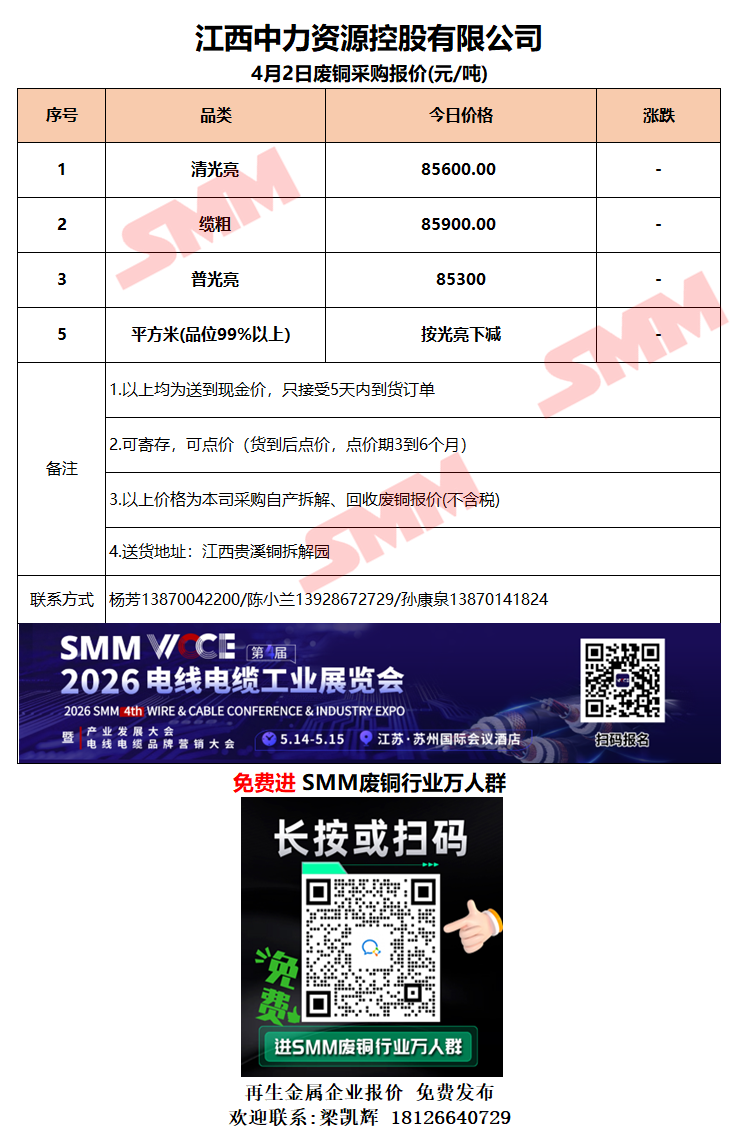 4月2日江西中力 废铜采购报价