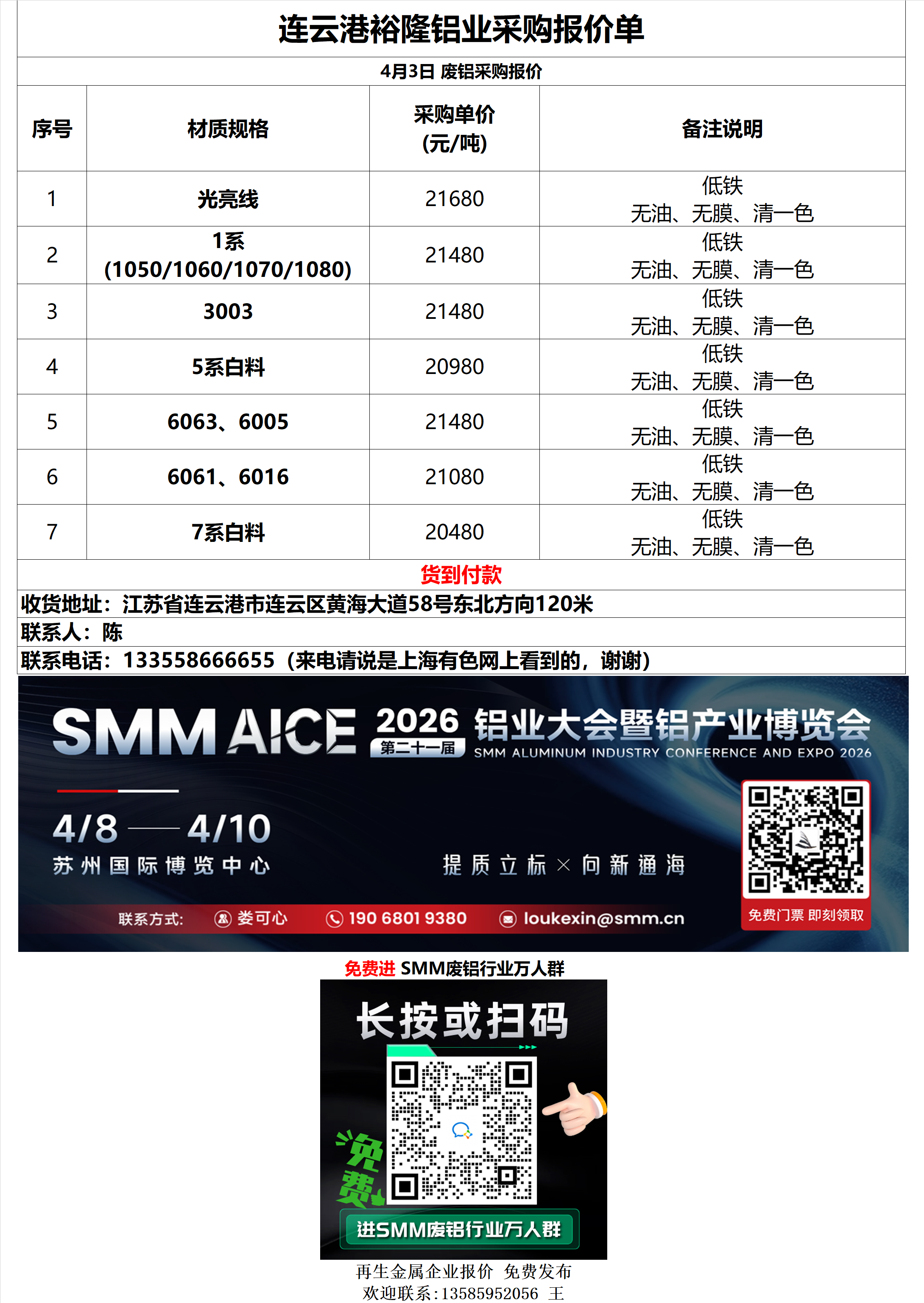 4月3日新格集团 废铝采购报价