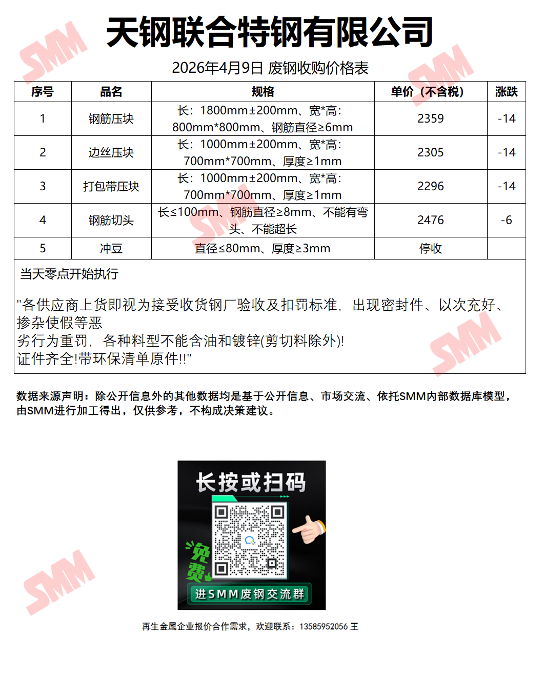 4月9日天钢联合特钢 废钢收购报价