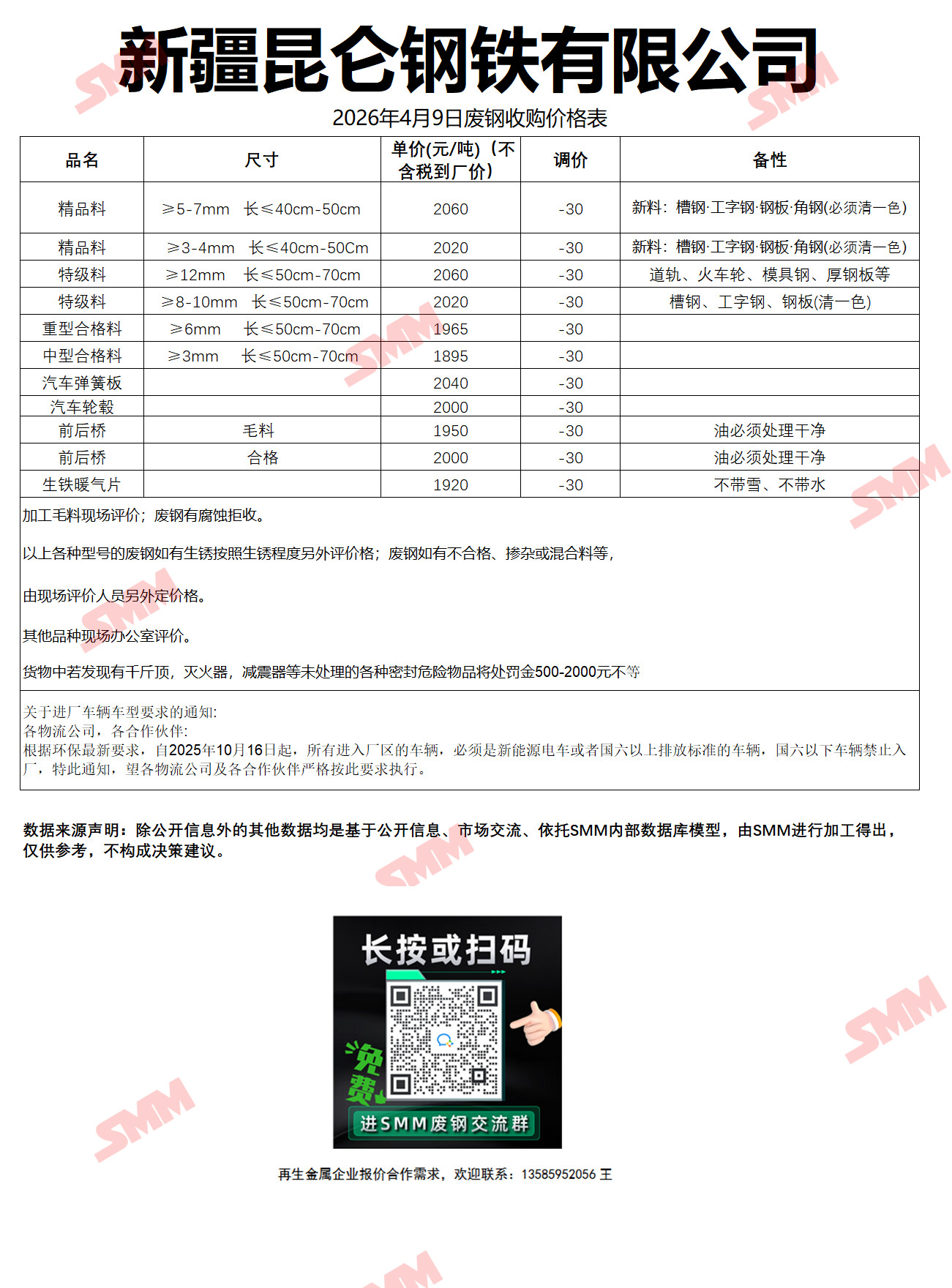 4月9日新疆昆仑钢铁 废钢收购报价