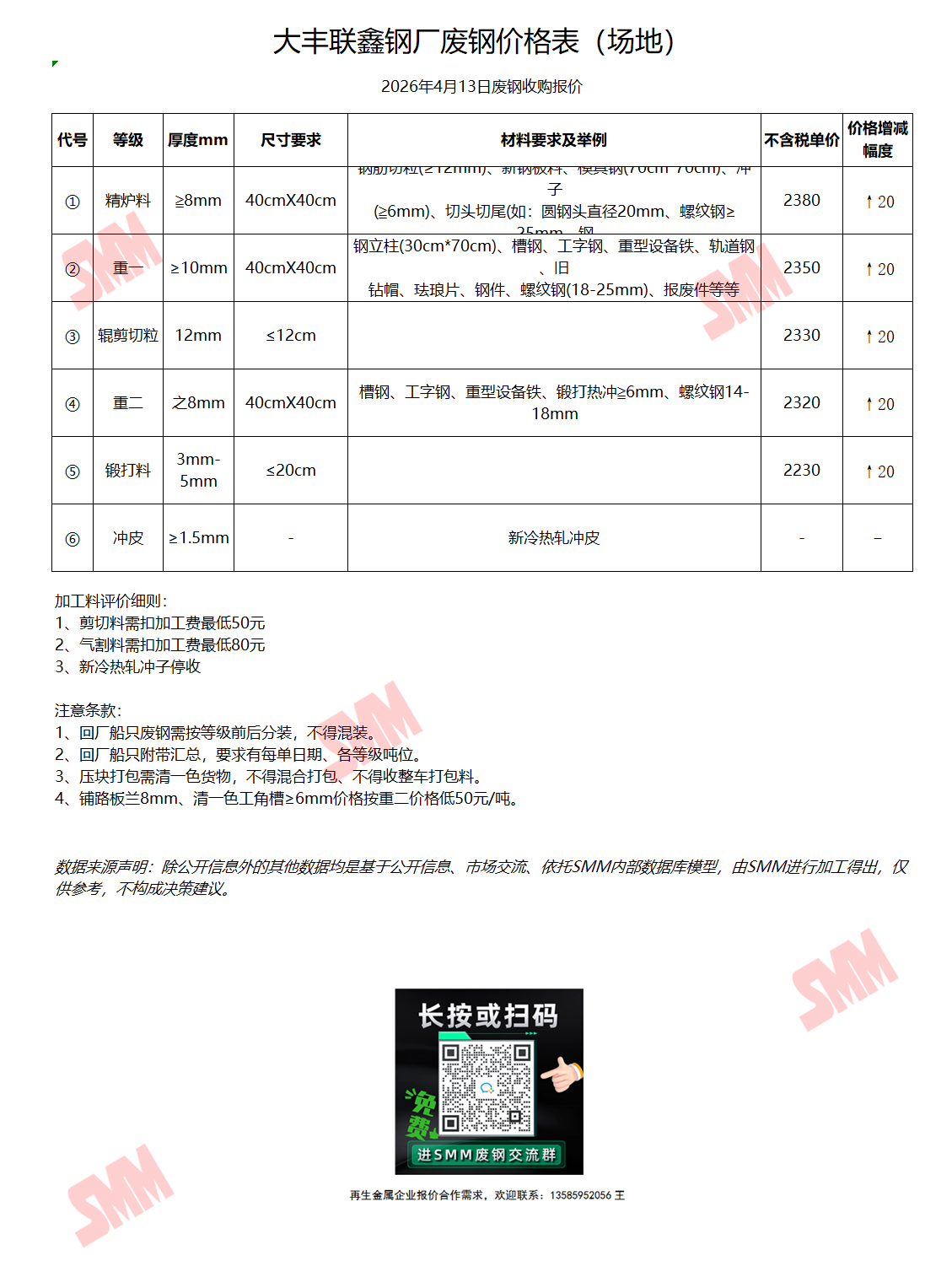 4月14日14时40分江苏鸿泰钢铁 废钢收购报价