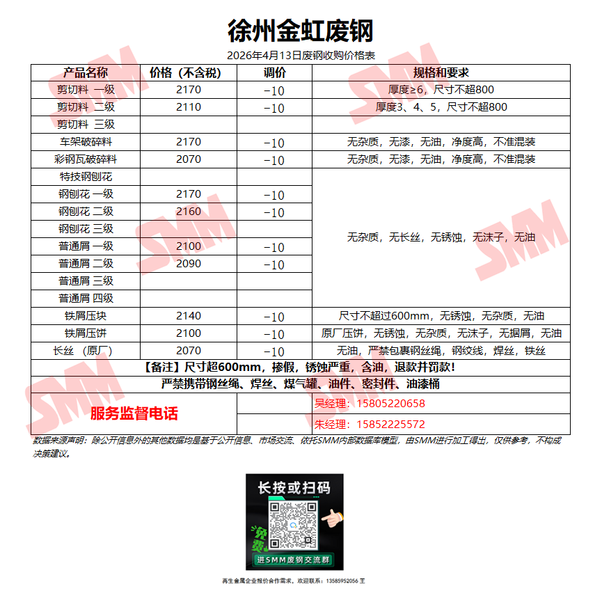 4月13日徐州金虹 废钢收购报价