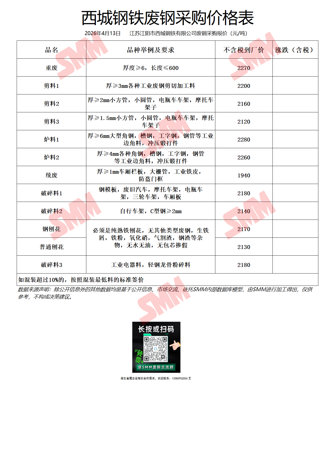 4月13日西城钢铁 废钢采购报价