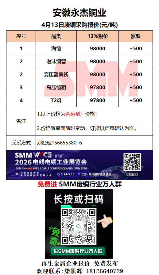 今日安徽永杰 废铜采购报价已更新,有货的朋友欢迎联系我们!