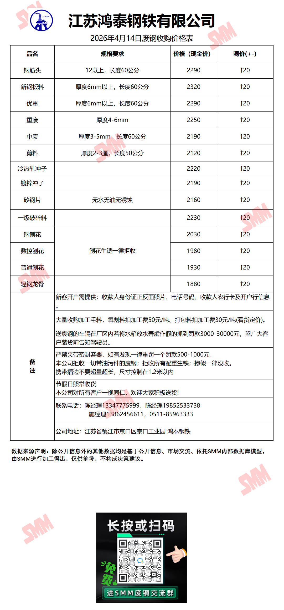 4月14日14时40分江苏鸿泰钢铁 废钢收购报价