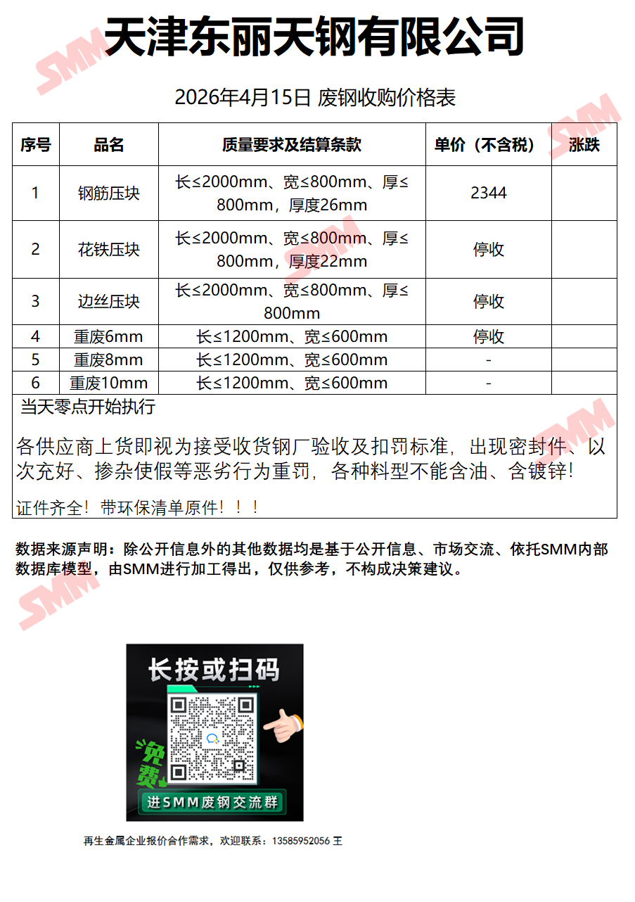 4月15日河北纵横集团丰南钢铁 废钢采购报价