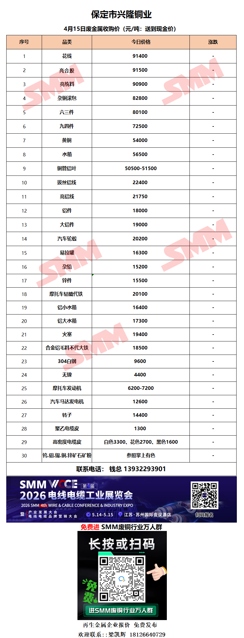 4月15日保定兴隆铜业 废铜采购报价