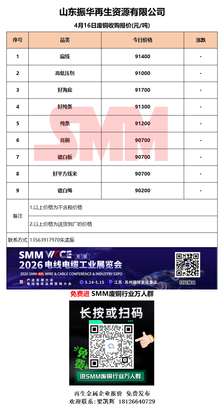 今日山东振华 废铜采购报价已更新,有货的朋友欢迎联系我们!