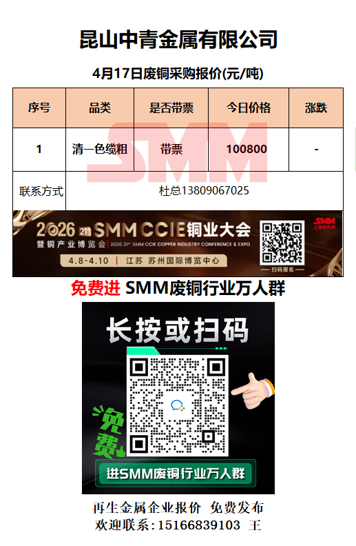 4月17日高诺(衡阳)铜业 废铜采购报价