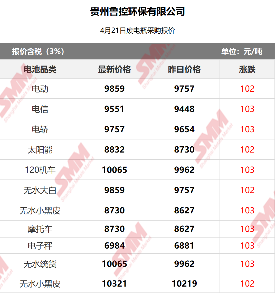 SMM 2026/4/21 国内知名再生铅企业废电瓶采购报价