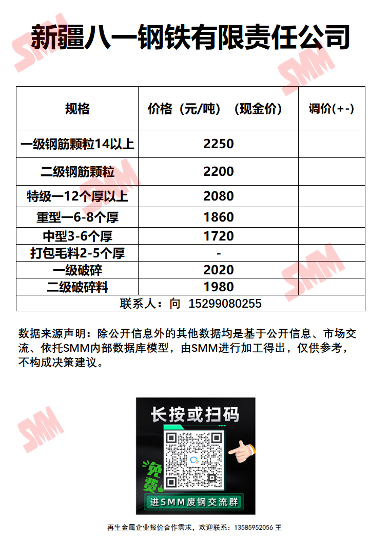 今日新疆八一钢铁 废钢收购报价已更新,有货的朋友欢迎联系我们!