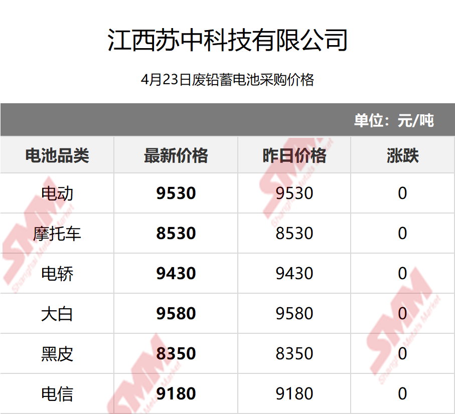 SMM 2026/4/23 国内知名再生铅企业废电瓶采购报价