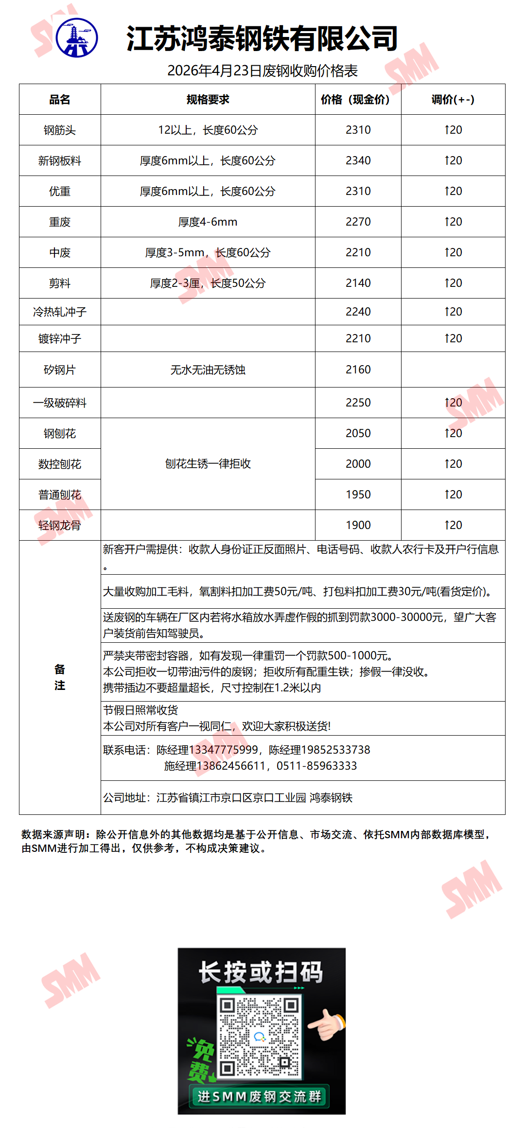 4月23日14时33分江苏鸿泰钢铁 废钢收购报价