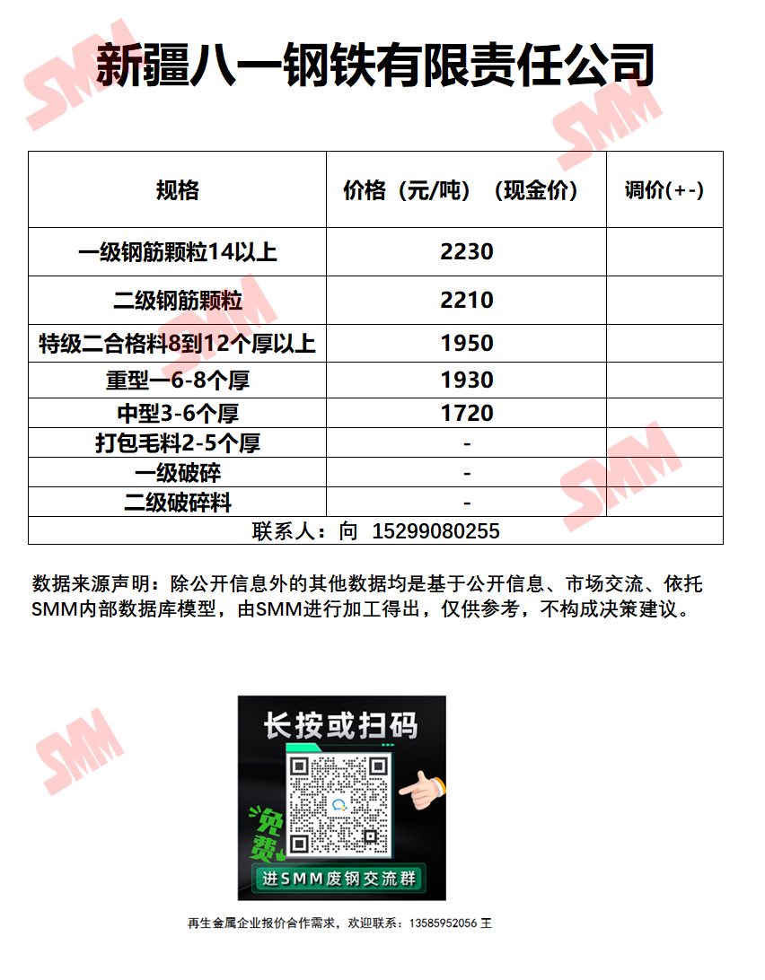 今日新疆八一钢铁 废钢收购报价已更新,有货的朋友欢迎联系我们!