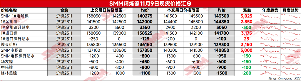 SMM精炼镍11月9日现货价格汇总【SMM数据】