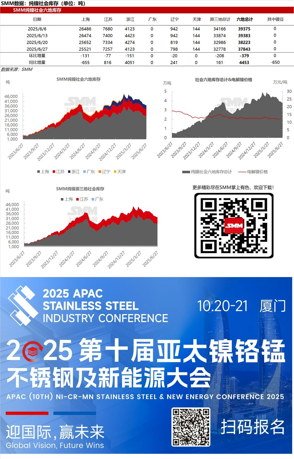 【SMM纯镍库存】6月27日社会六地纯镍库存